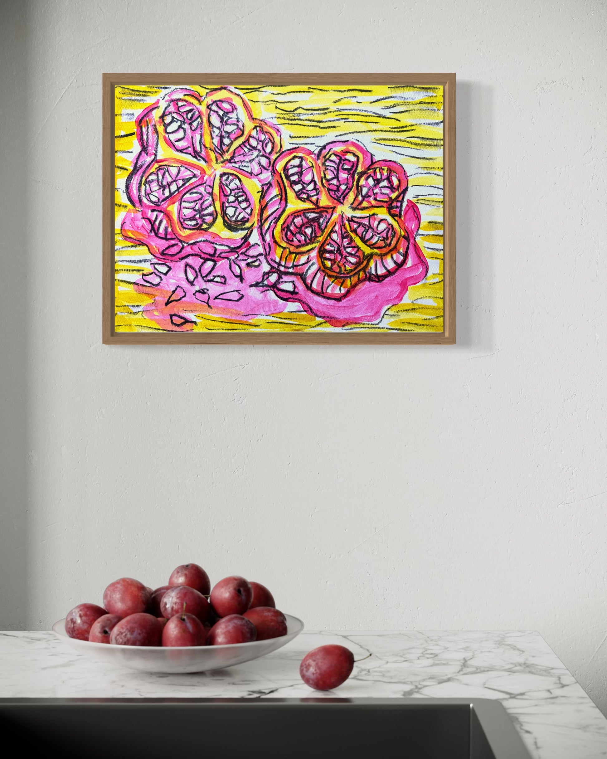The beautiful fruit structure and colour of the juice as the seeds spill out.