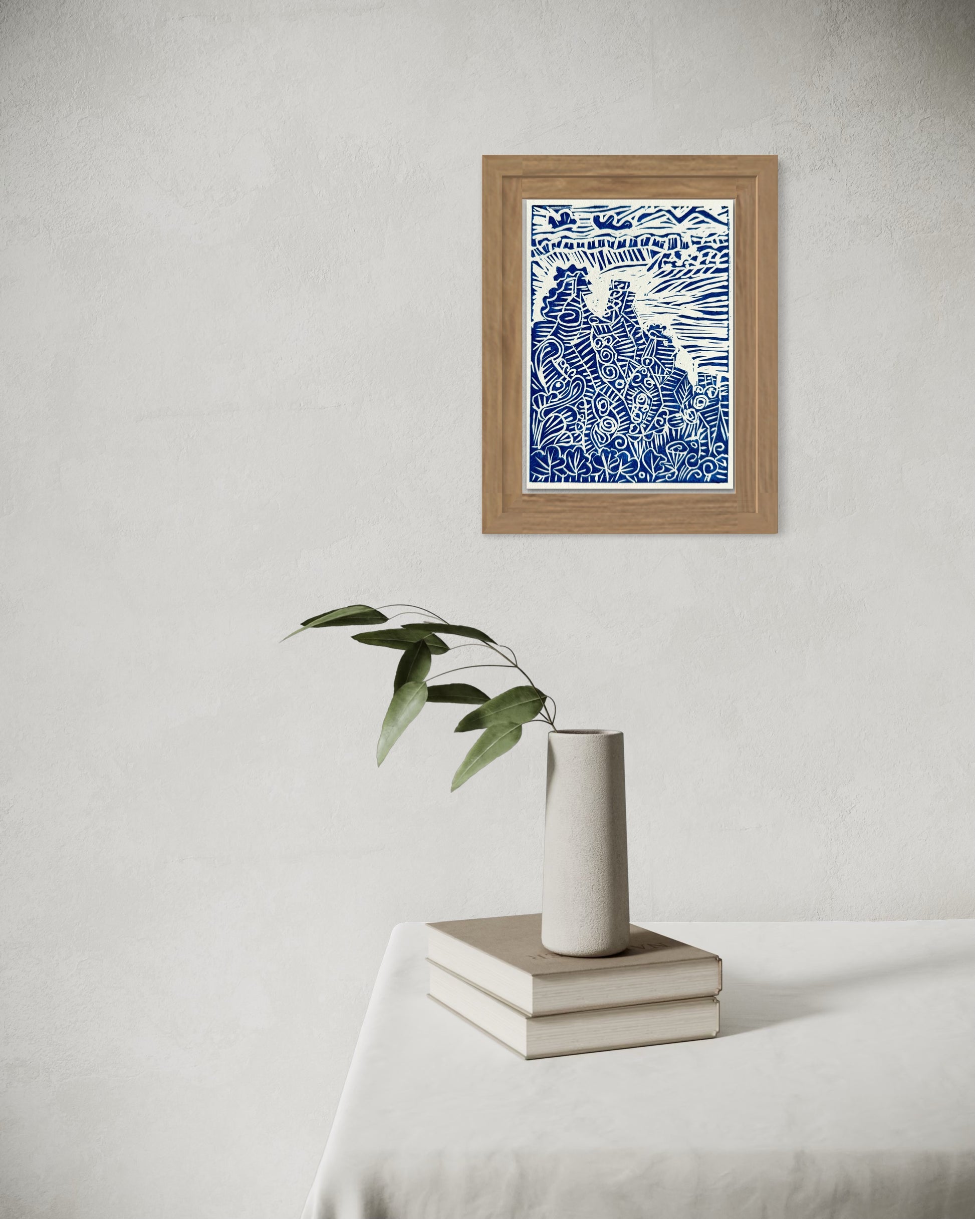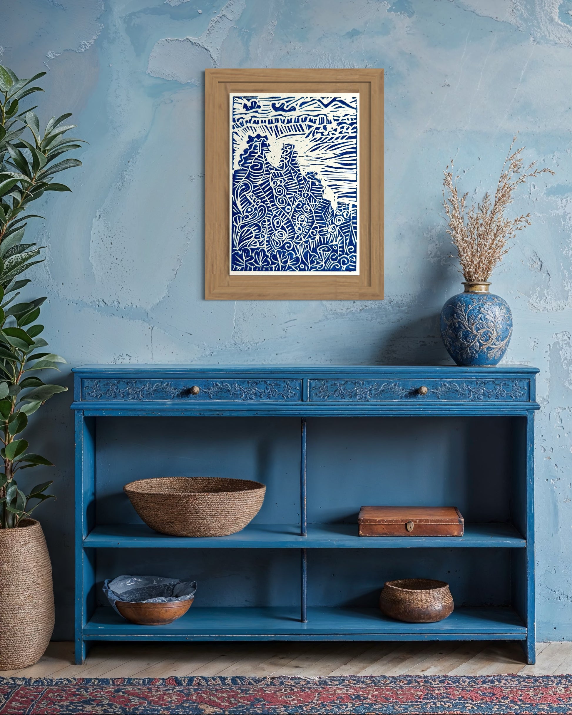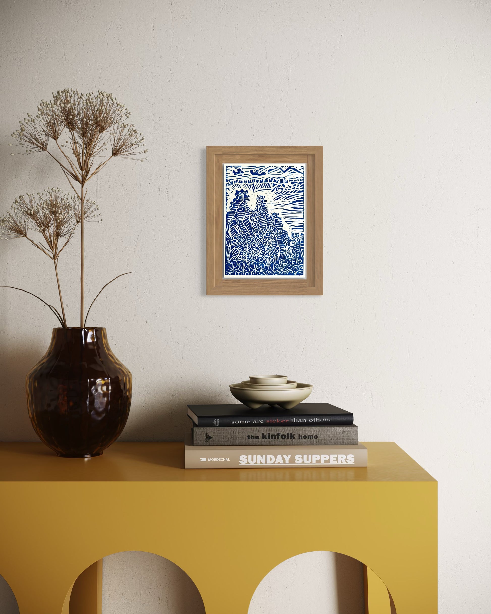The 3 Sisters world famous rock formation in a modern graphic style.