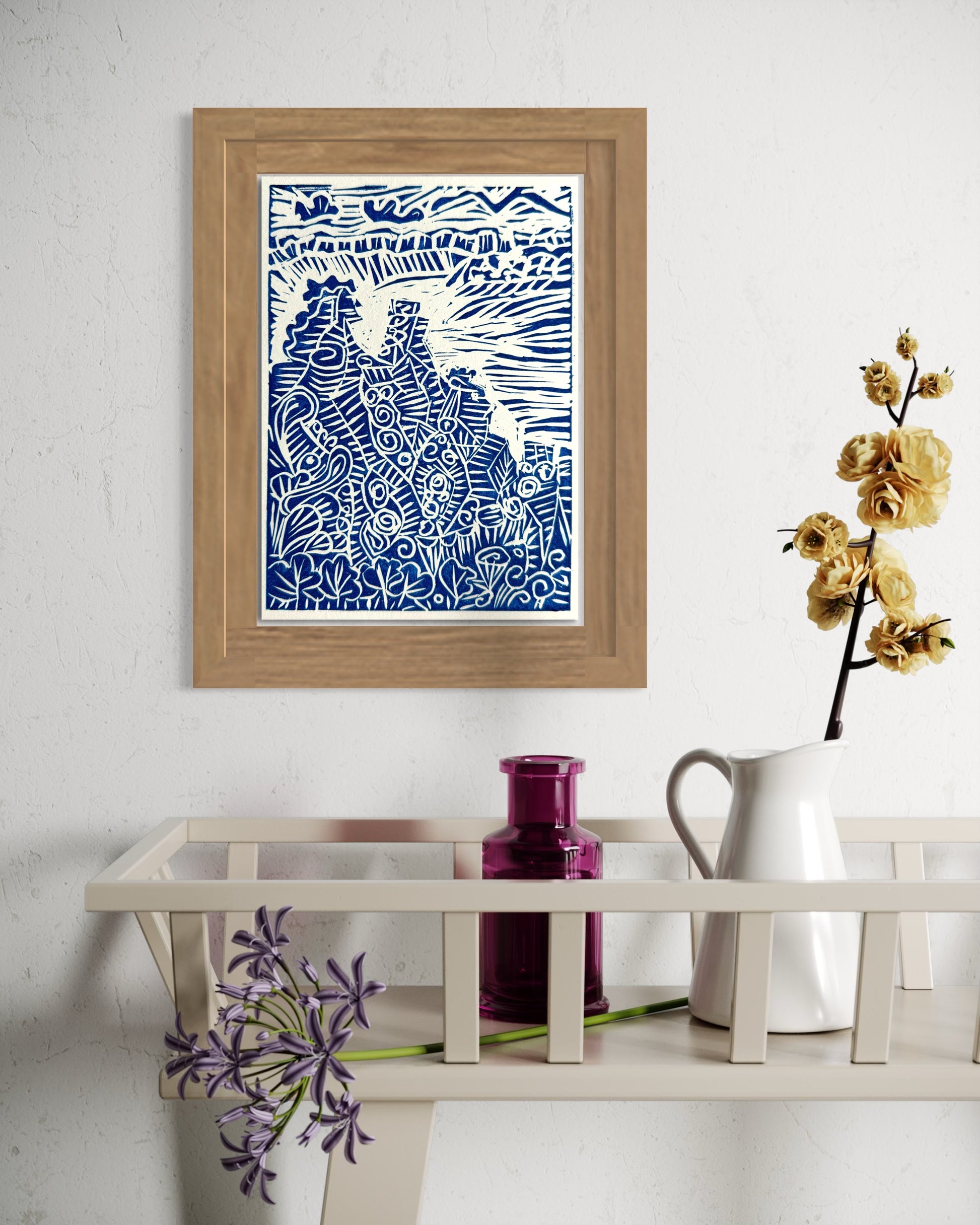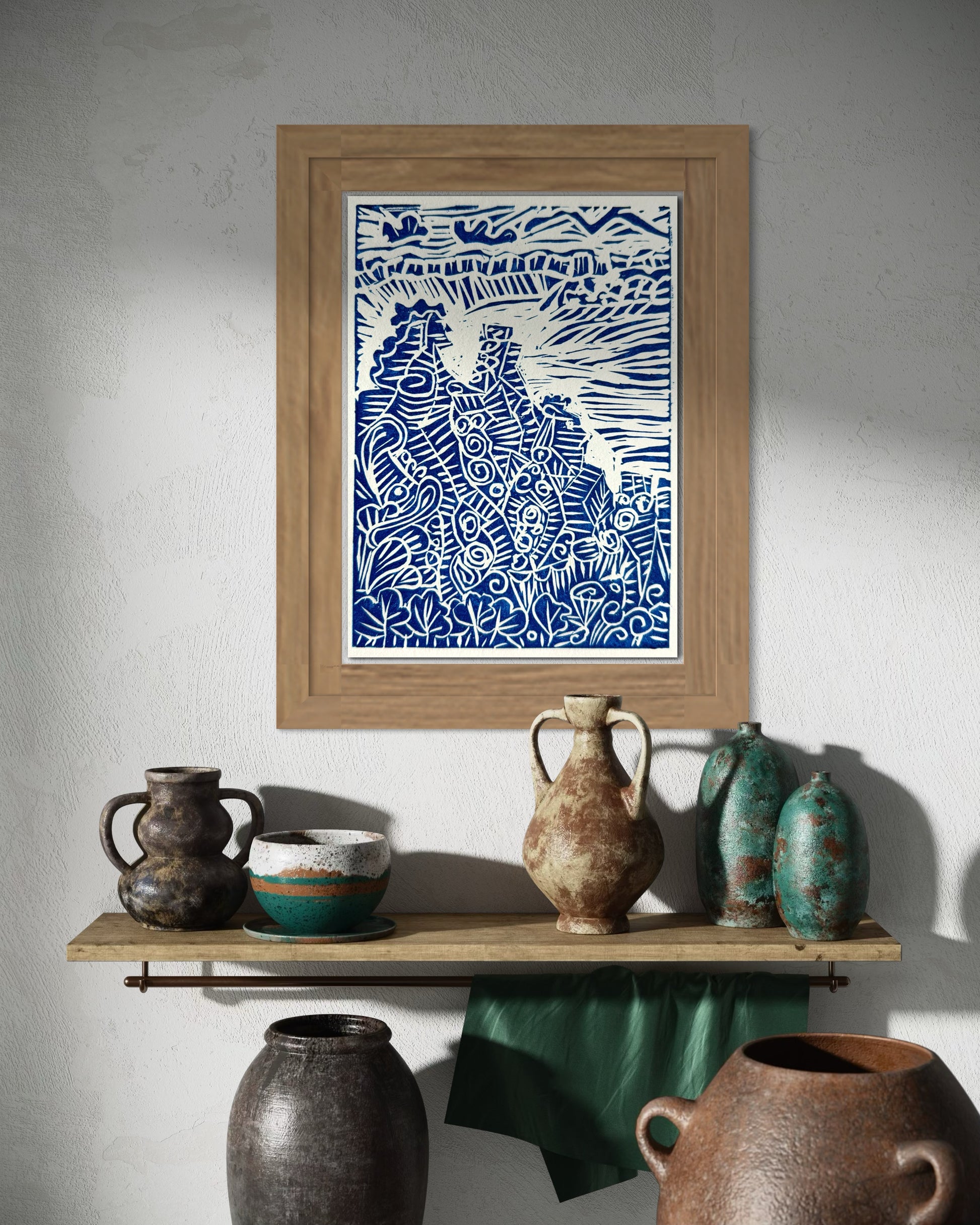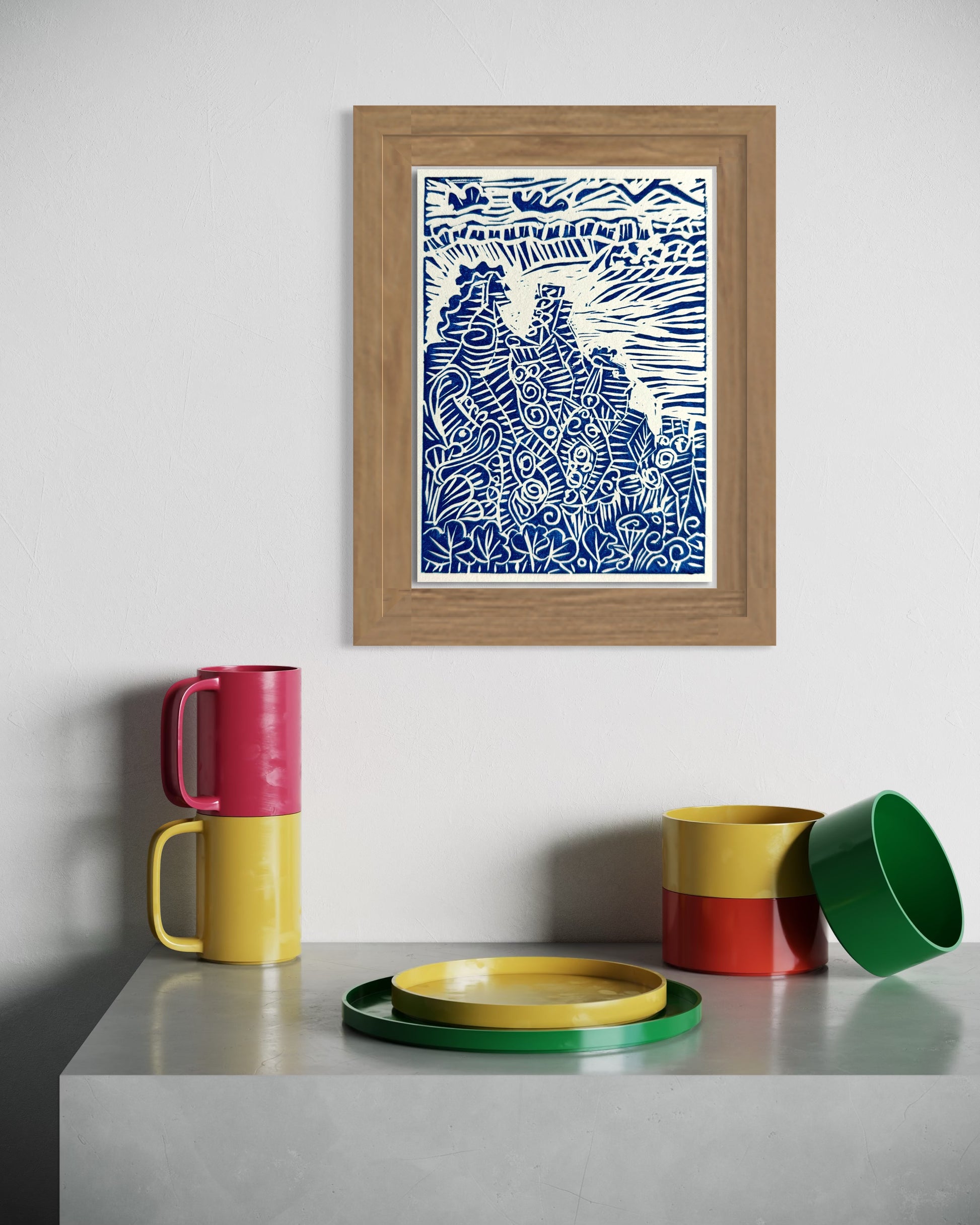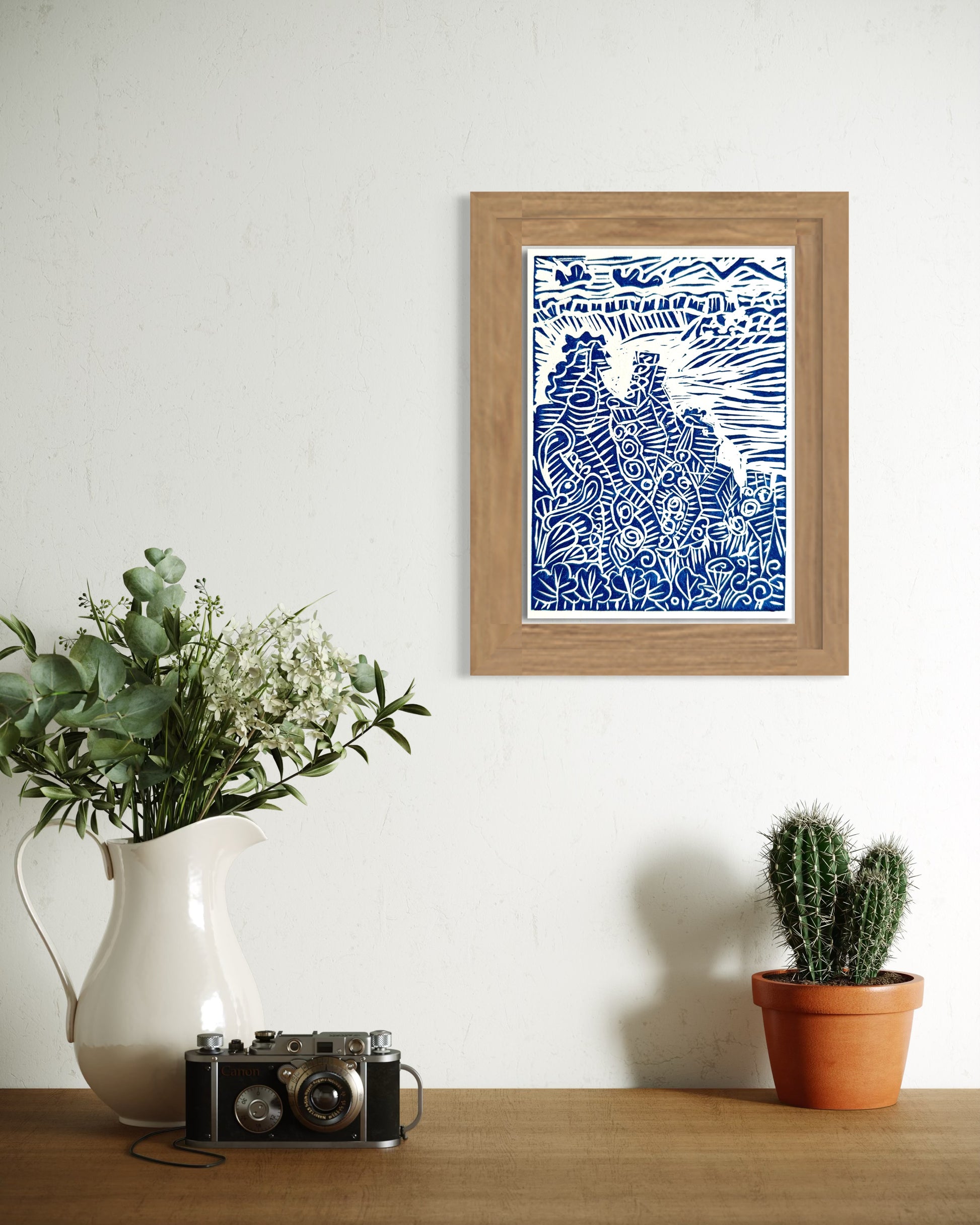 The 3 Sisters world famous rock formation in a modern graphic style.